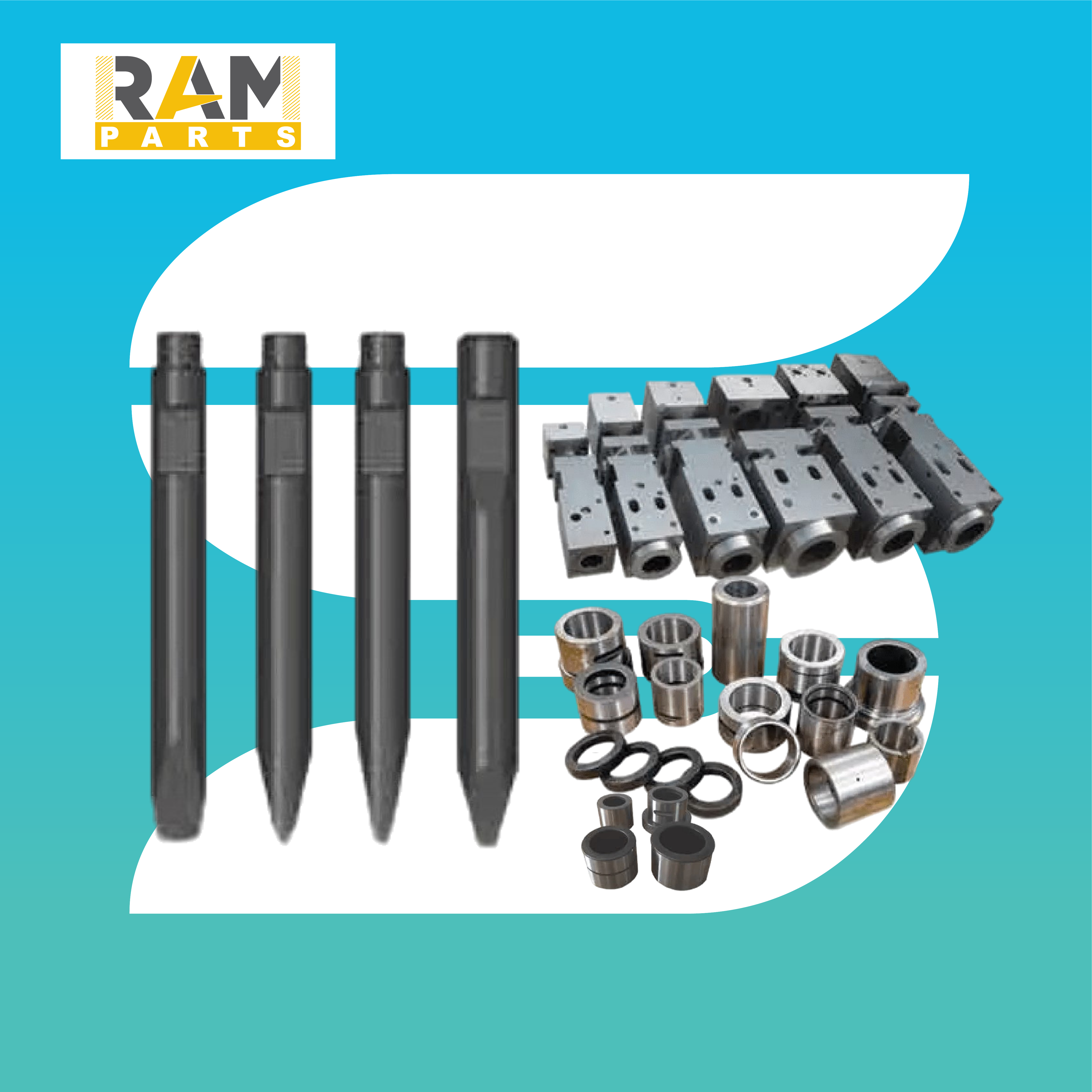 Spare parts and working tools for hydraulic breakers designed for heavy-duty breaking applications. The range includes chisels, wear components, and internal parts supporting breaker performance, durability, and consistent operation in demanding jobsite conditions.